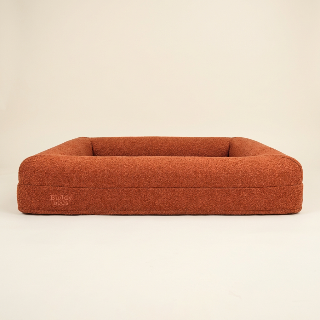 Avec sa housse couleur terre cuite, le Buddy Bed se transforme en un havre de paix chaleureux et élégant pour votre chien, et en un élément raffiné de votre espace de vie.