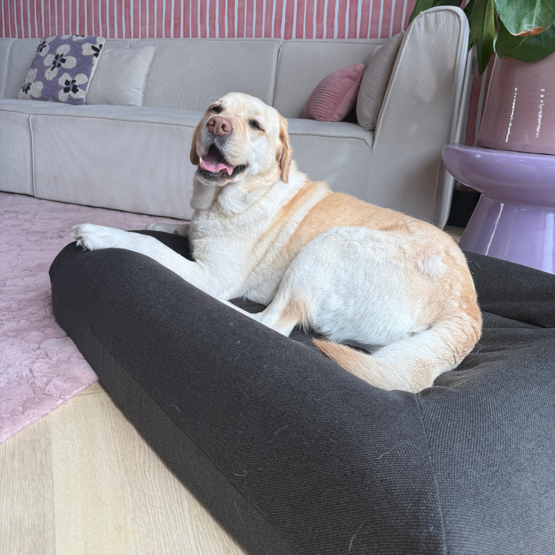Mijn hond Senna 9,8 jaar heeft atrose,z ze moest even wennen aan haar Buddy bed, maar nu is ze er bijna niet uit te slaan.😉 Ze is eenn Roemeen kruising Ierse Wolfshond/ golden retriever ze is 28,5 kilo